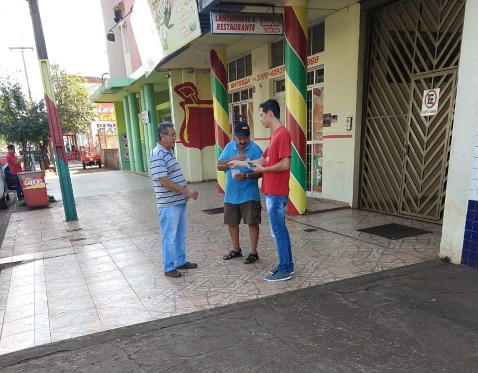 Sistema de distribuição em comércio panfletagem em mãos para clientes e funcionários.